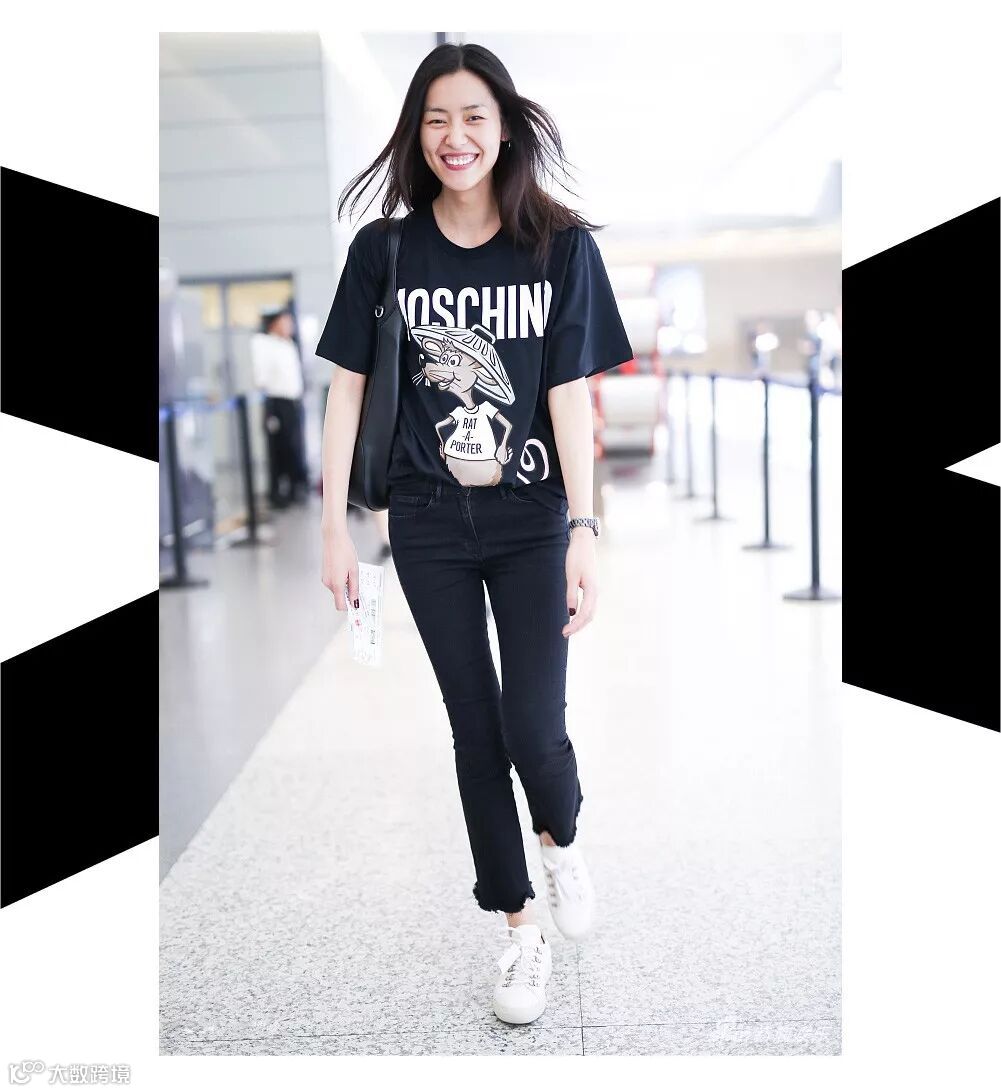 大表姐的衣品从来都是刚刚好,黑色卡通T恤&黑色微喇牛仔裤,日常又带感,特别适合去喝咖啡。当然咯,童鞋们也不一定都要败一件 MOSCHINO才可以过黑色情人节。