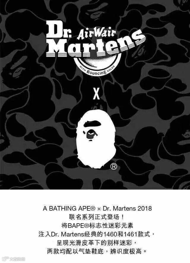 在前些时候抢先透露了一双 A BATHING APE x Dr.Martens 军绿鞋履之后,双方的合作系列也在今日全数公开。沿用 A BATHING APE 吸睛的迷彩风格,全系列鞋履鞋面均采用了“猿人头”浮点 Logo,潮流气息满满。