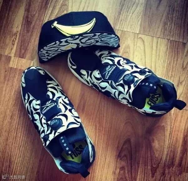 此番FOSS x Reebok联名款的 Instapump Fury鞋款在设计上选择以香蕉元素表达出快乐的含义,醒目的黑色香蕉图案满版呈现于充气表层之上,而后跟更有黄色香蕉刺绣亮眼点缀,充满着时尚的喜感!