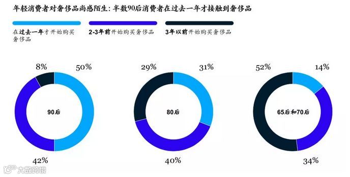 但中国年轻一代接触奢侈品的时间不长,有半数的“90后”和31%的“80后”奢侈品消费者在过去的一年才开始购买人生中的第一件奢侈品。新兴的中国奢侈品消费者对品牌数百年的传承缺乏认知,更多是受到现代品牌故事的影响。