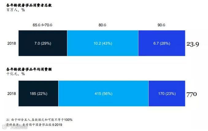 对于报告首次聚焦的中国“80后”和“90后”人群,数据显示,2018年上述两个群体分别占到奢侈品买家总量的43%和28%,分别贡献了中国奢侈品总消费的56%和23%。