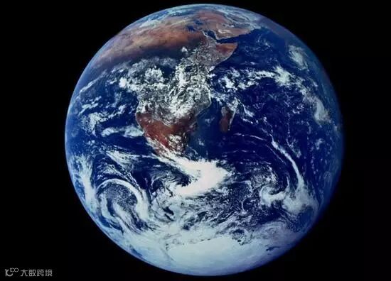 这张图片来自著名的阿波罗登月计划最后一次飞行任务,阿波罗17号。1972年12月7日,在飞行至距地球4.5万公里的地方,飞行乘组拍下了这张著名的照片,这张照片也取名为“蓝色弹珠”。在阿波罗17号计划之后,人类历史上最伟大的科技任务正式宣告结束。