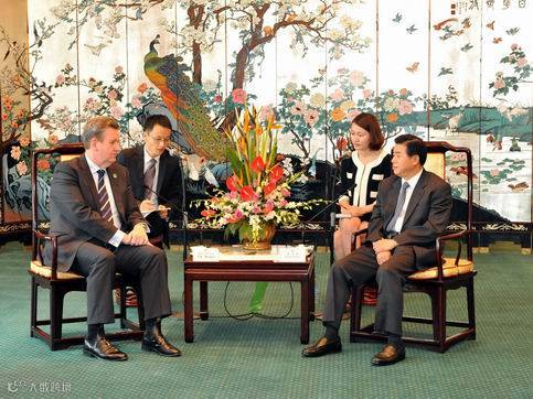 上,朱小丹省长与麦克•贝尔德州长签署2014联合声明)