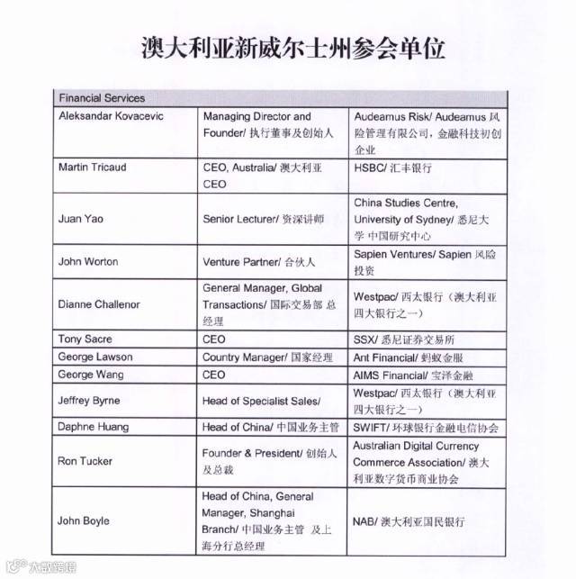 本次澳大利亚新南威尔士州金融界代表团