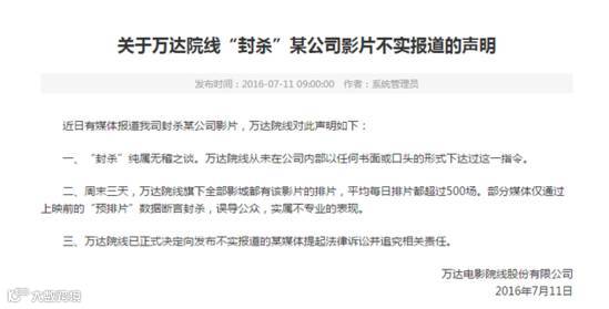 2015年的全国总票房份额中万达也是拥有碾压性优势,