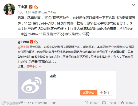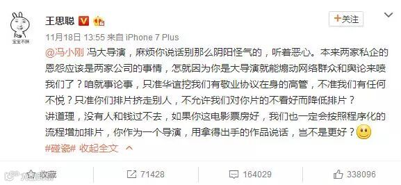 冯导发了一条这样的微博,直指要“开撕”王健林