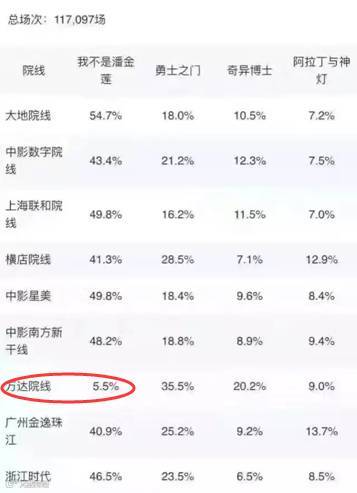 毕竟票房前五的院线中其他四家都绕着40%打圈圈。