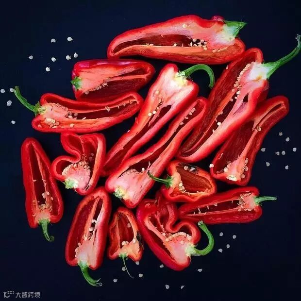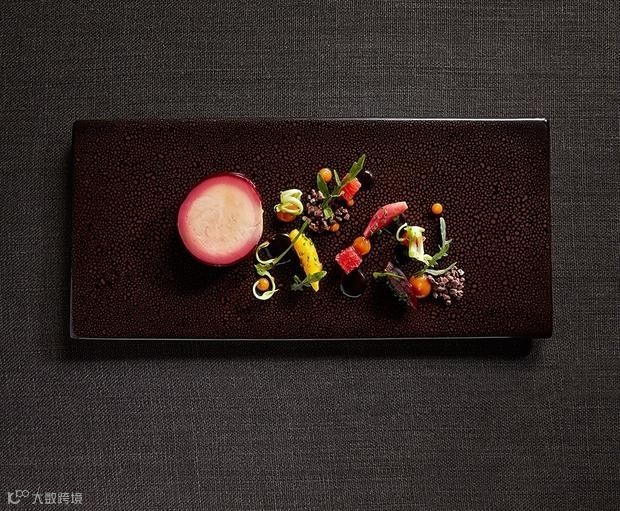 ▲ 暗色的盘子和颜色鲜艳的食物搭配起来有强烈的对比感, 显得很神秘