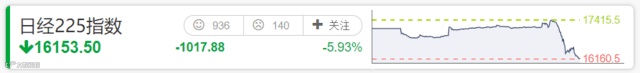 日经225指数跌幅现扩大至5.9%,至三个月低位;东证指数跌幅扩大至5.4%。