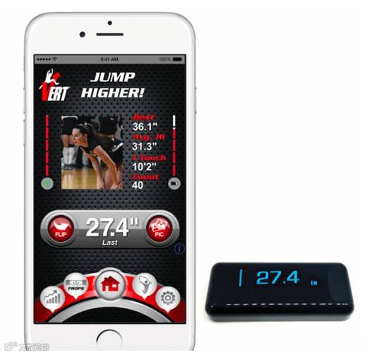 VERT是一款监测运动员跳跃情况的智能设备。它系于运动员腰部。可以测量运动员跳跃的高度和次数,并将数据实时传输到匹配的APP中。