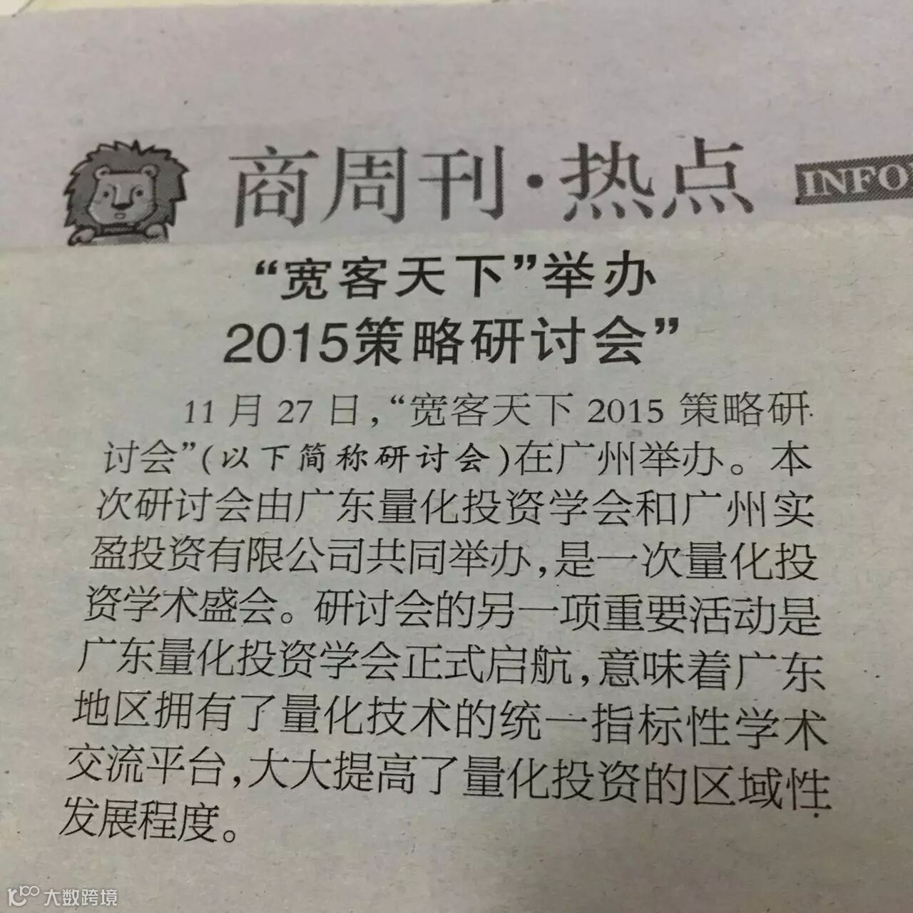 ▲“宽客天下”策略研讨会·广州站刊登于信息时报。