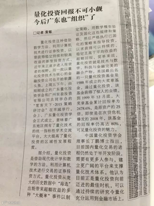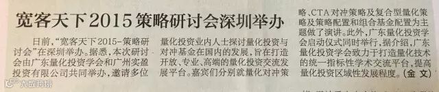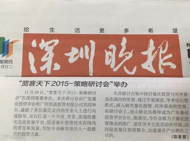 ▲“宽客天下”策略研讨会·深圳站刊登于深圳晚报。
