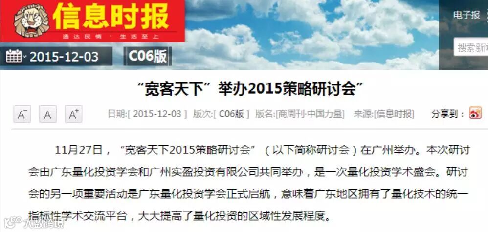 ▲“宽客天下”策略研讨会·广州站刊登于信息时报网站上。