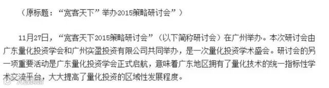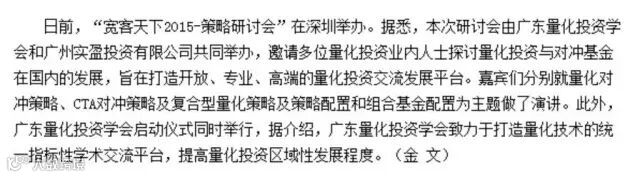 “宽客天下2015·策略研讨会”引关注,主流媒体竞相报道!