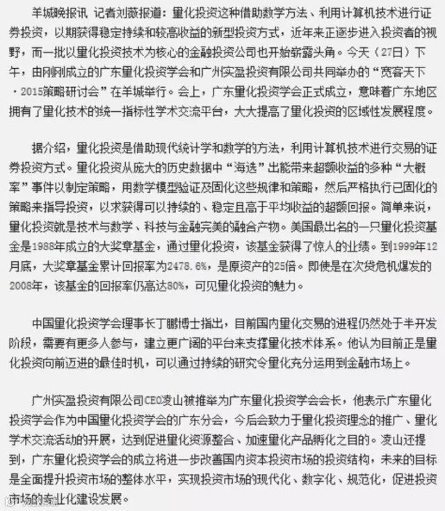 ▲“宽客天下”策略研讨会·广州站刊登于羊城晚报·金羊网站上。