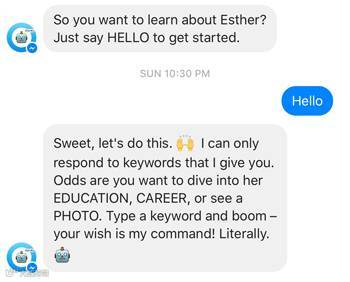 开发了一款名为“EstherBot”的“简历聊天机器人”。