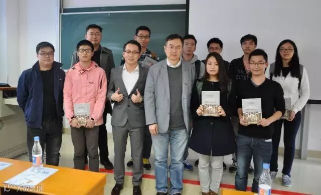 ▲提问的每位同学都获得了讲座福利——丁鹏博士编著的书籍;实盈CEO凌山、陈国雄教授与暨大学子一起留影。
