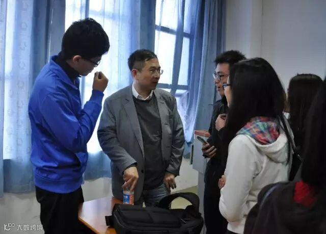 ▲虽然讲座已结束,但同学们热情不减,仍在与陈国雄教授交流。