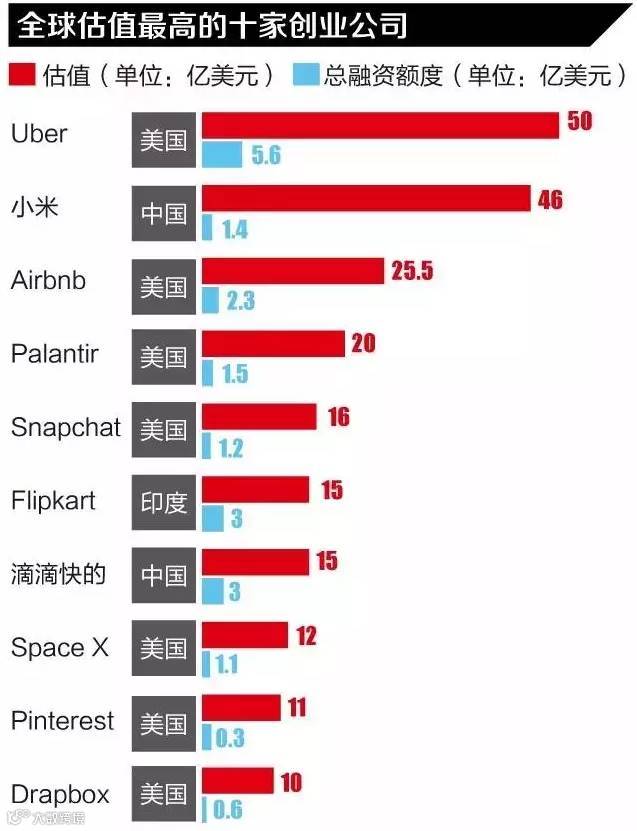 以滴滴叫板uber为首的一群中国公司,有可能实现弯道超车,比如大众点评的估值已超过美国yelp。