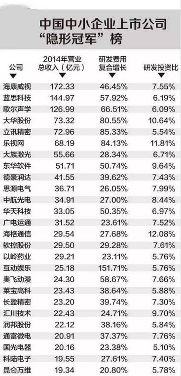 “隐形冠军”层出不穷