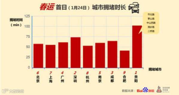 春运首日城市拥堵时长