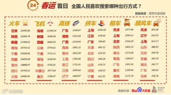 春运首日全国搜索出行方式