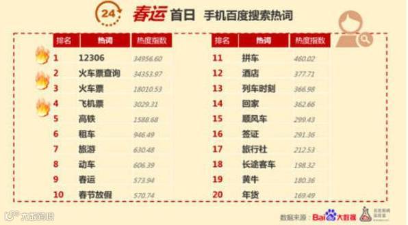 春运首日手机百度搜索热词