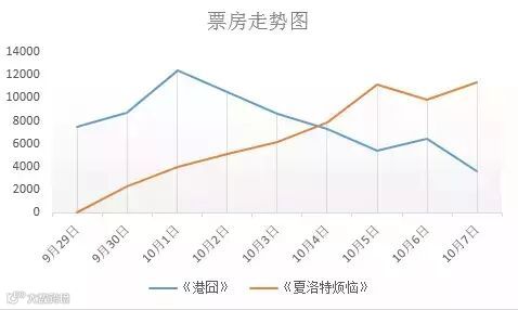 先来看看十一黄金周期间,两部电影票房的统计走势图: