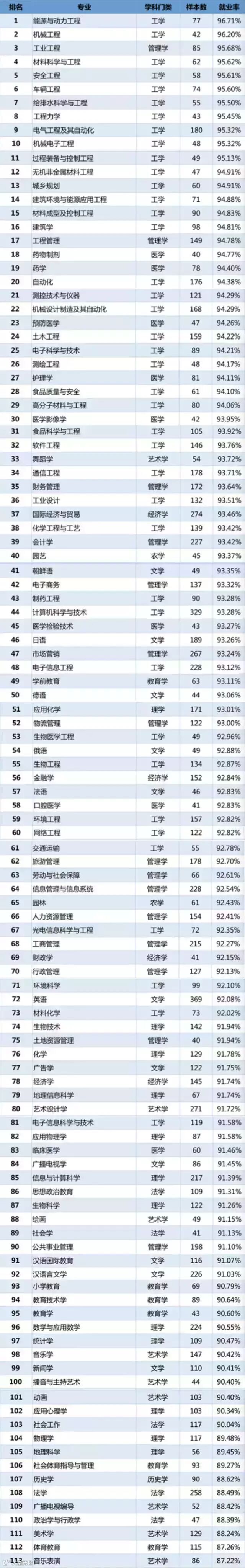 ,“最好大学网”对各个专业本科毕业生的就业率进行了统计、比较和排名。