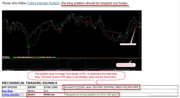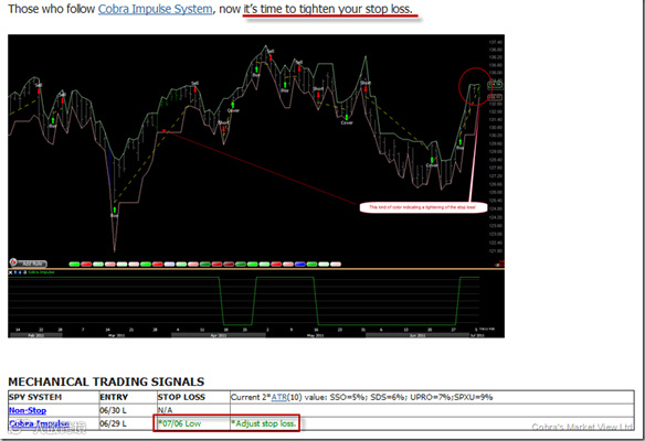 在若干个交易日以后,7月6日,从系统的指示来看,这一天我们需要收紧止损。