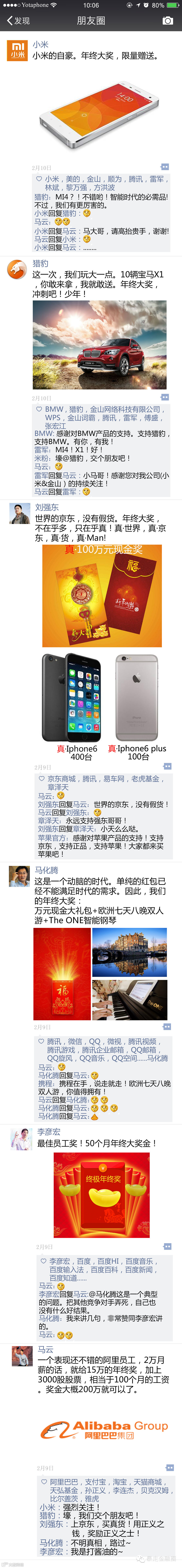 近日,各大土豪公司纷纷在年前晒出了自己的年会细节,与其说是年会,还不如说是一场电商与电商之间、巨头与巨头之间的明争暗“斗”,互相攀“比”,其中最为吸引人的则是各大公司的神秘年终大奖。马云、李开复、马化腾、刘强东等巨头们的PK?