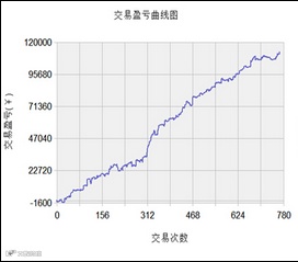下面两个图表是笔者在黄金连续合约5分钟图上测试的双均线模型的交易盈亏曲线(回测时段2014年1月1日-2014年6月16日)。图3是包含未来函数的策略,即如果当前k线上出现均线金叉,则以当前k线开盘价买入,死叉则卖出。图4是不包含未来函数的策略,即如果上一根k线上出现均线金叉,则以当前k线开盘价买入,死叉则卖出。可以看出,两者资金曲线差异非常大。