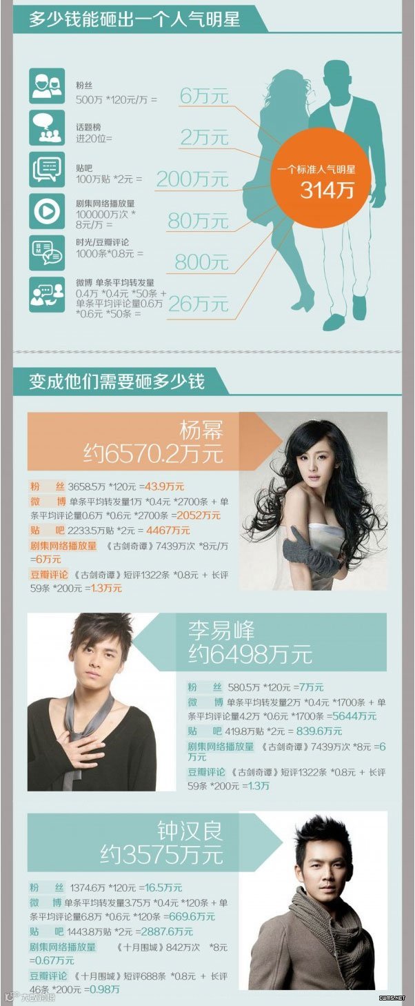 混演艺圈,你或许不能在短时间内成为一个公认的演技派,但晋升为一个人气明星却并不是难事,至少在数据方面,是可行的——所谓人气指数,其实都可以花钱买,大约314万就能砸出一个人气明星了!