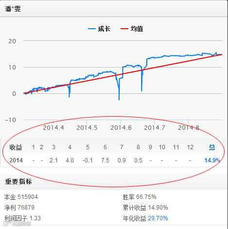 ②、登陆后进入界面后,可以观察客户账号的收益成长曲线,还可以查看客户从开户到目前为止每个月的收益状况。
