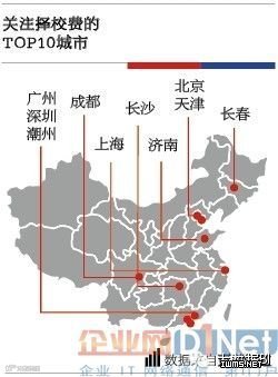 择校费成为普遍的风气,是供需两旺的结果。一方面家长们有强烈的择校需求,可以砸锅卖铁、一掷千金;另一方面学校的确有财务的压力,没有钱何谈办好学校? 尤其在人口密集、竞争激烈、经济发达的地区,择校成了家长们的不二选择。从百度知道上对择校费的844,060条相关内容上看,除了北上广深这几个意料之 中的大城市外,择校费关注度TOP10中,济南、长春、天津、潮州、成都、武汉等城市赫然上榜。