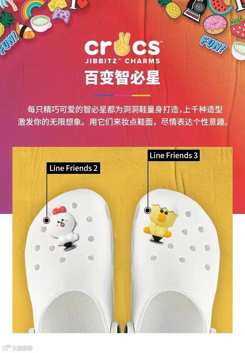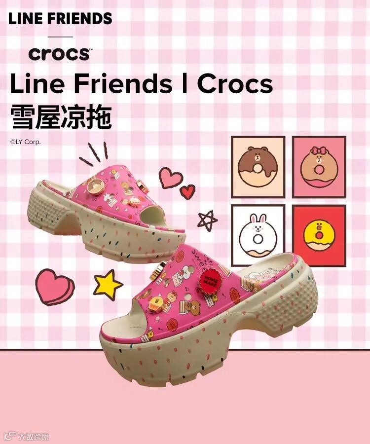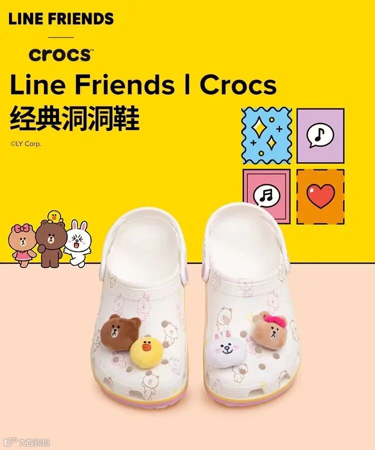 全球创新休闲鞋领导品牌 CROCS 卡骆驰携手 Line Friends 推出限定合作系列鞋款。以 Line Friends 中备受欢迎的经典角色形象布朗熊和可妮兔为设计主轴呈现经典洞洞鞋与雪屋凉拖,一同以可爱奇趣之态开启夏季奇遇之旅。