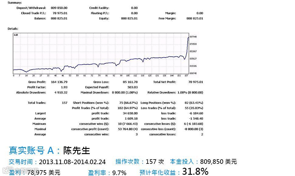 1、实盈的核心技术通过了13年的现货黄金数据,并稳定保证每年客户的收益在32%。