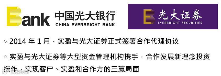 3、实盈投资已于2014年与光大集团签署合作代理协议,实现了实盈与大型资金管理机构的深度合作,同时为投资者和客户提供最优质的投资服务计划。