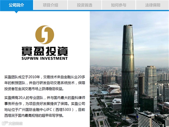 实盈的自动交易技术,能保证投资者在贵金属市场达到32%以上的年化收益,是真正领先金融行业的投资产品,投资者只要下载实盈的理财APP,就能足不出户随时查看收益,做到“躺着”也能赚钱。目前实盈总部位于广州珠江新城的广州国际金融中心53楼03室,是中国最高规格的写字楼。