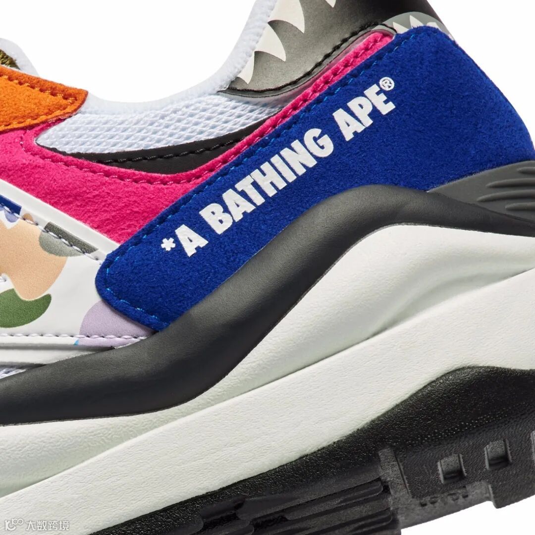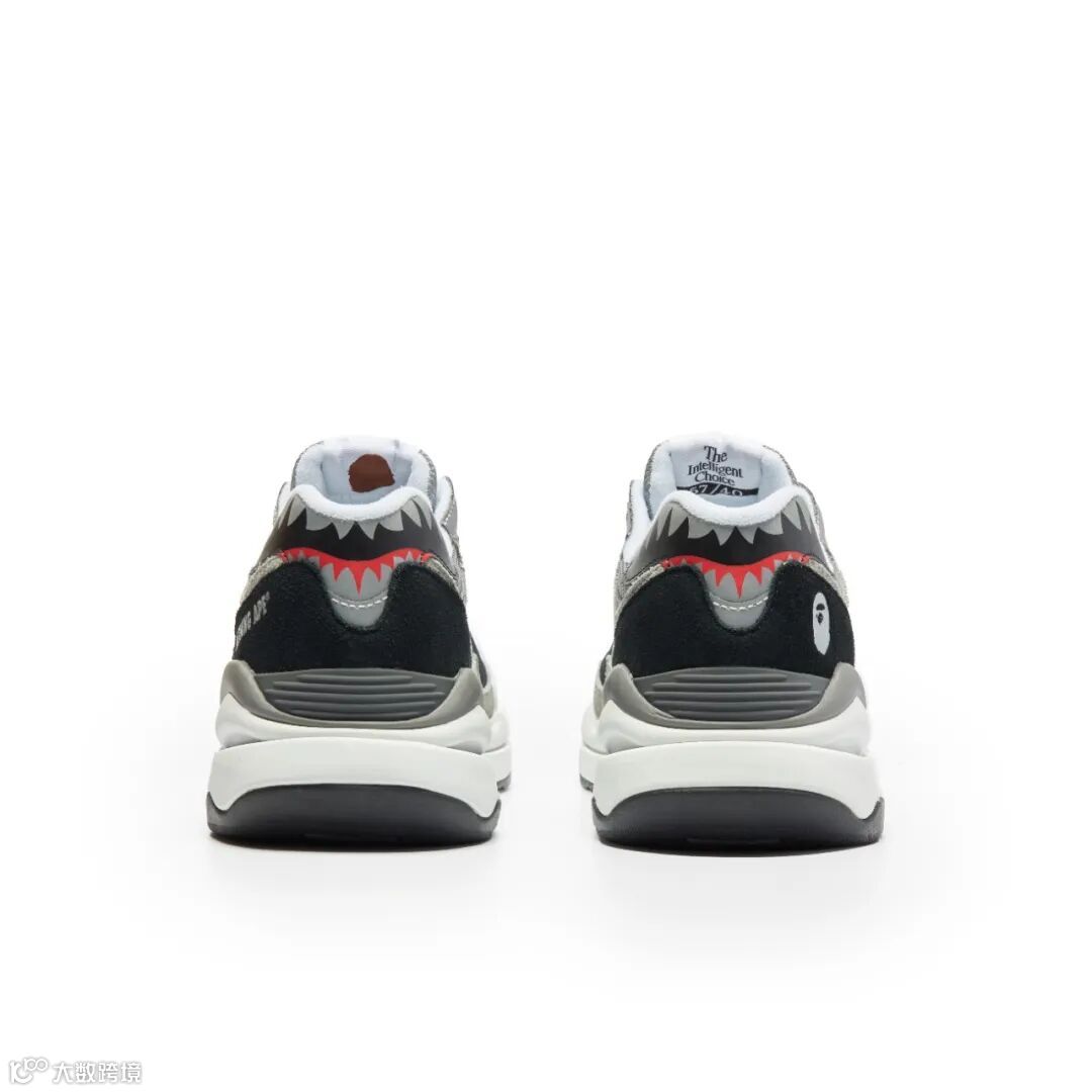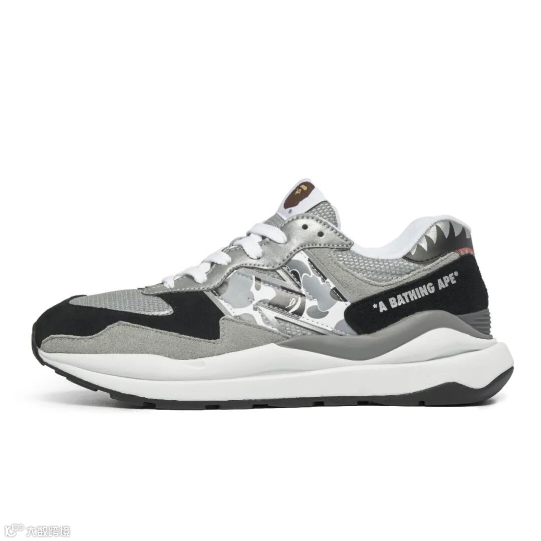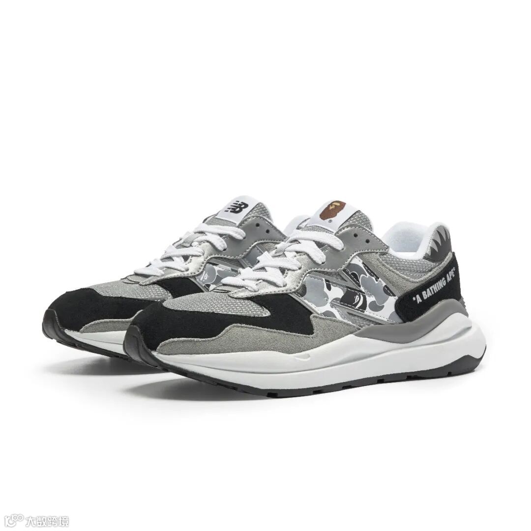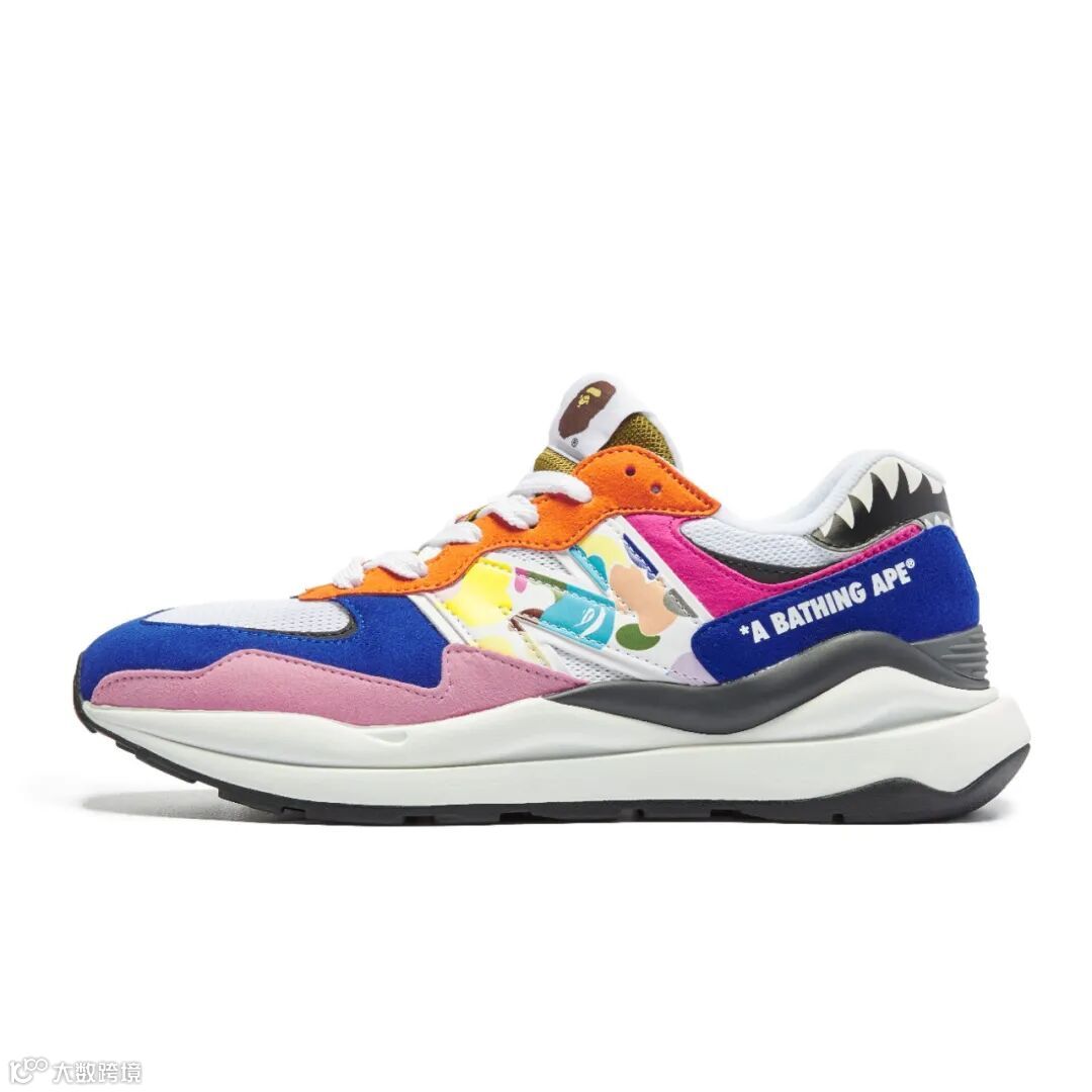 当 Bape ® 元素融入 New Balance 57/40,会碰撞出怎样的花火?两款 57/40 采用黑白灰、橘蓝粉玫红配色进行诠释。两侧 N 字母,融入 Bape ® 经典猿人迷彩图案,鞋舌标志与鞋身后方,分别有布贴猿人图案,以及猿人压印图案。鞋后跟装饰片处印有 Bape ® 独有的鲨鱼利齿图案。