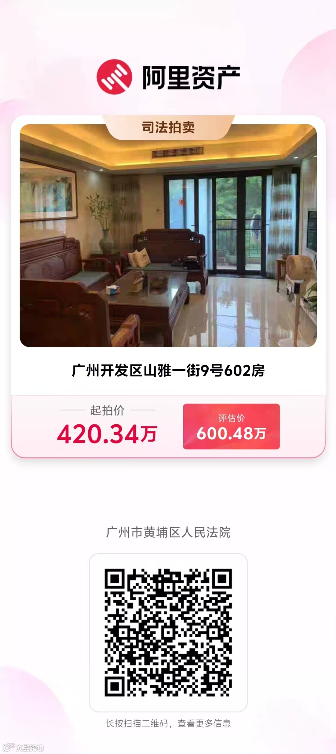 拍卖标的:广州开发区山雅一街9号602房【产权证号:粤(2018)广州市不动产权第 06079092 号】;用途:住宅;性质:商品房;建筑面积:156.99㎡;所在楼层:6层。
