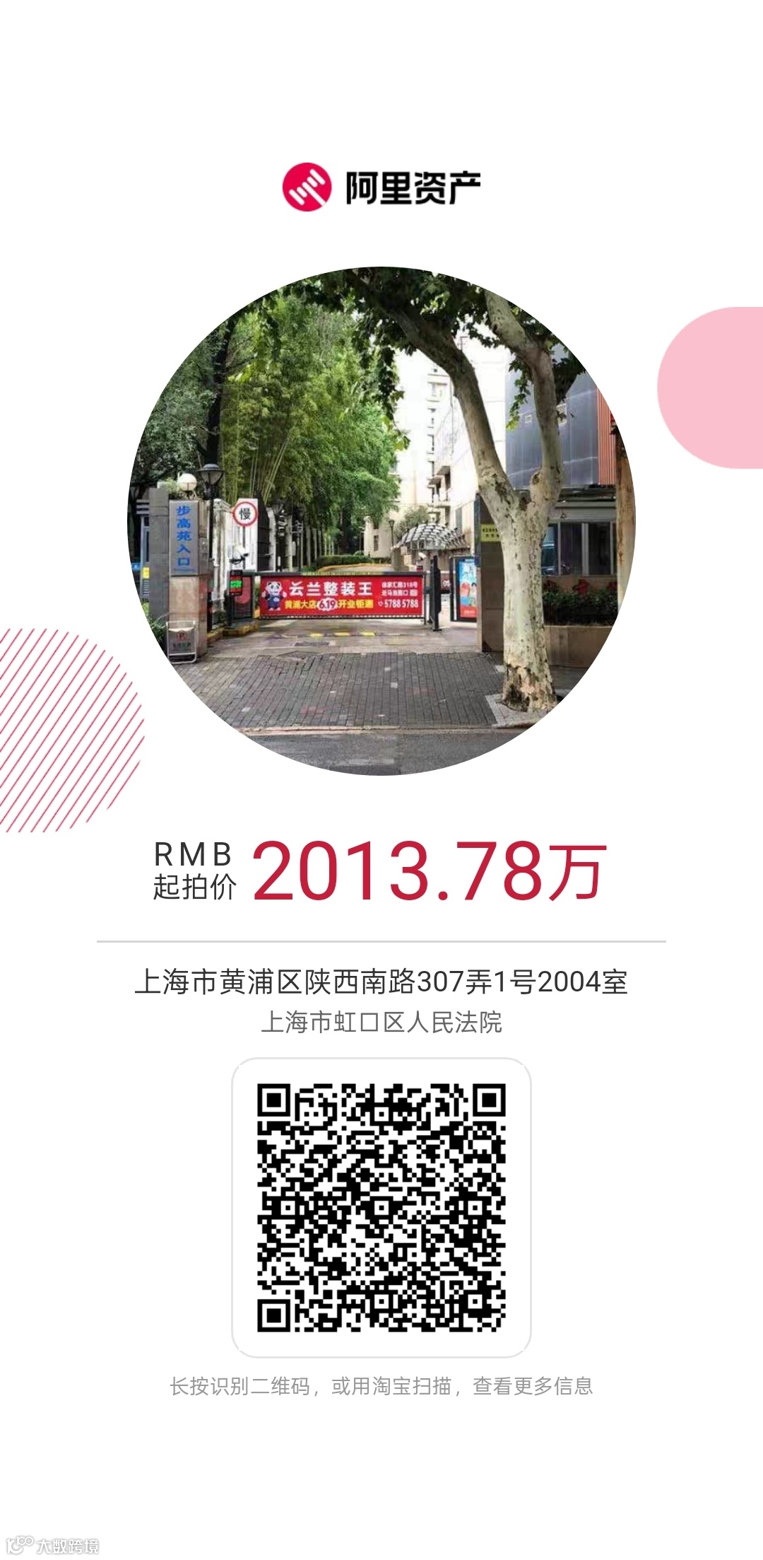 1、拍卖标的:上海市黄浦区陕西南路307弄1号2004室(房地产权证号:卢2002002710);