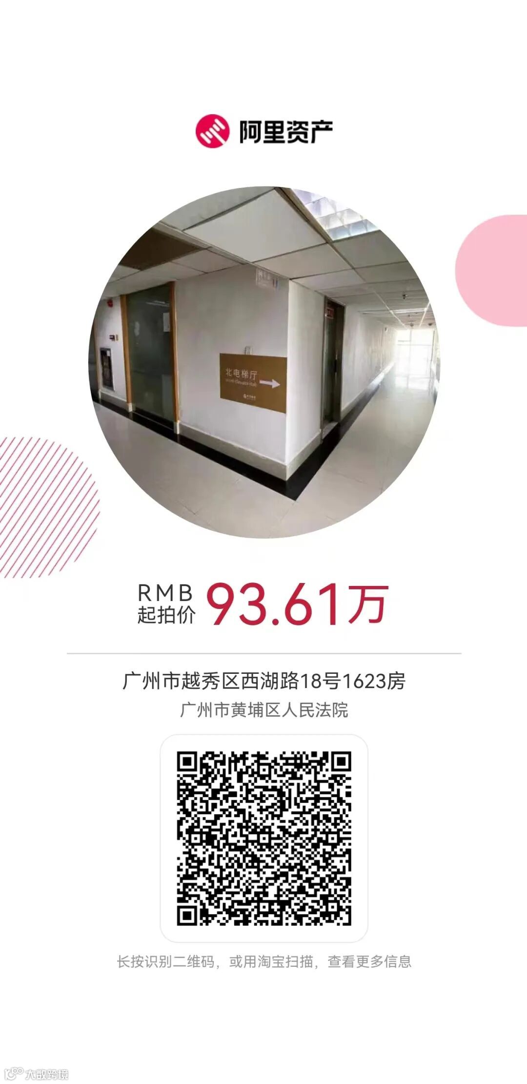 位于广州市越秀区西湖路18号1623房,规划用途为商务办公,建筑面积为93.8693㎡。