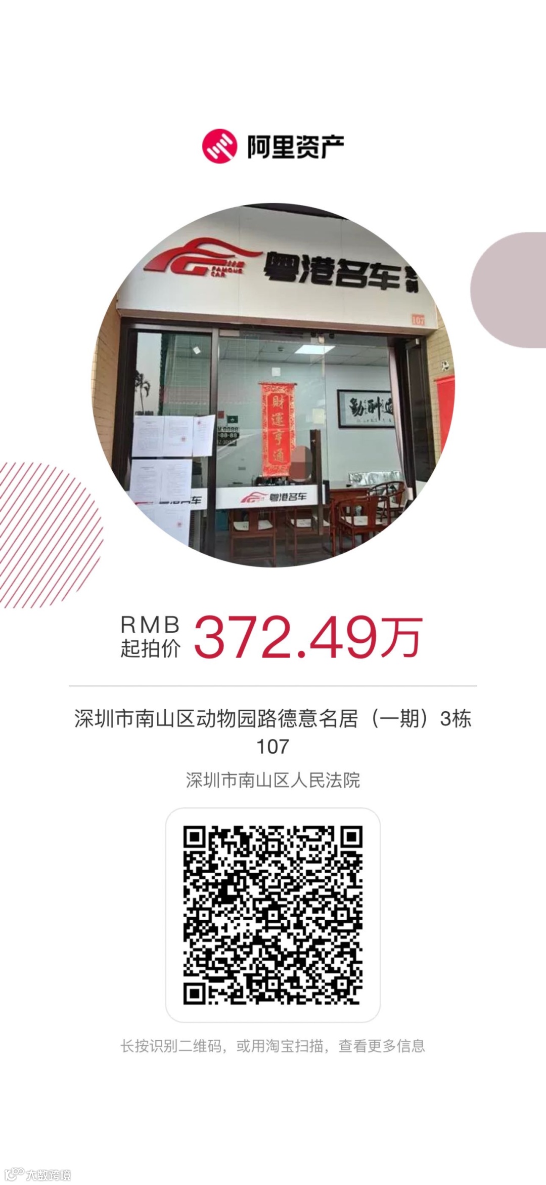 位于深圳市南山区动物园路德意名居(一期)3栋107,粤港名车所在铺位,建筑面积合计133.97㎡。该物业为德意名居社区底商,周边有平丽花园、汇城茗院、西湖林语等社区,人流量密集。