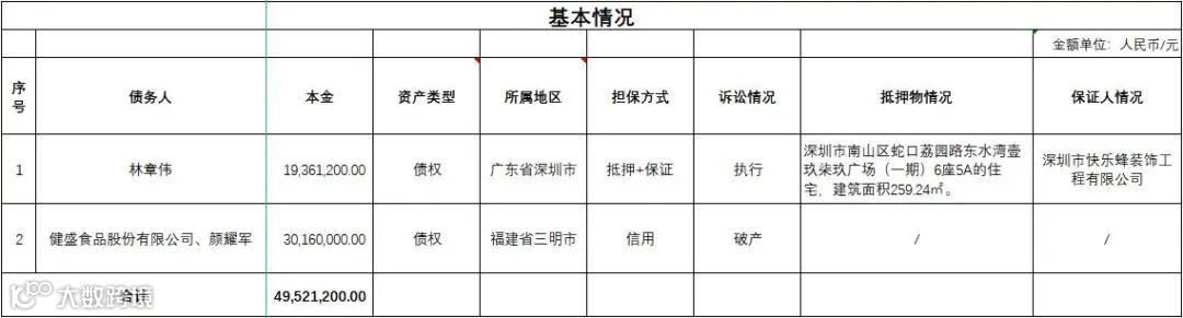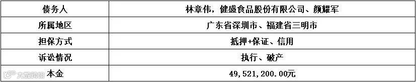 4、债务人健盛食品股份有限公司已进入破产重整程序,破产受理日为2018年9月15日。