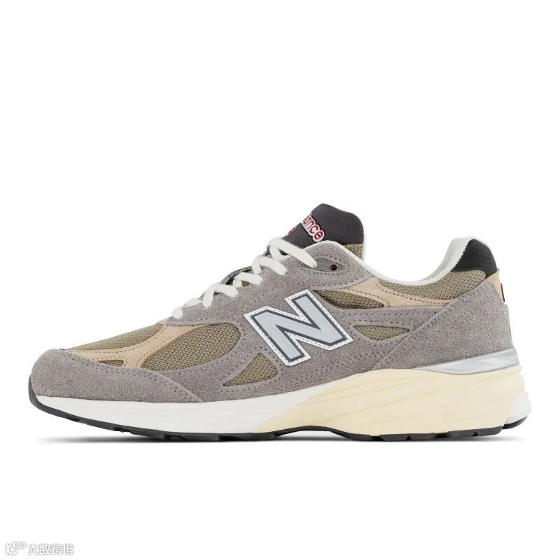 三款 「990」迭代鞋款,配色上都使用了 New Balance 经典的灰色(长毛麂皮),搭配橄榄绿密织鞋面。不同型号之间,在鞋身各处亦有卡其色拼接的绒面革,鞋舌处红色 New Balance 标识、鞋款两侧旁反光 “N” Logo 应用,缔造了这三款特别的 Teddy Santis 990。