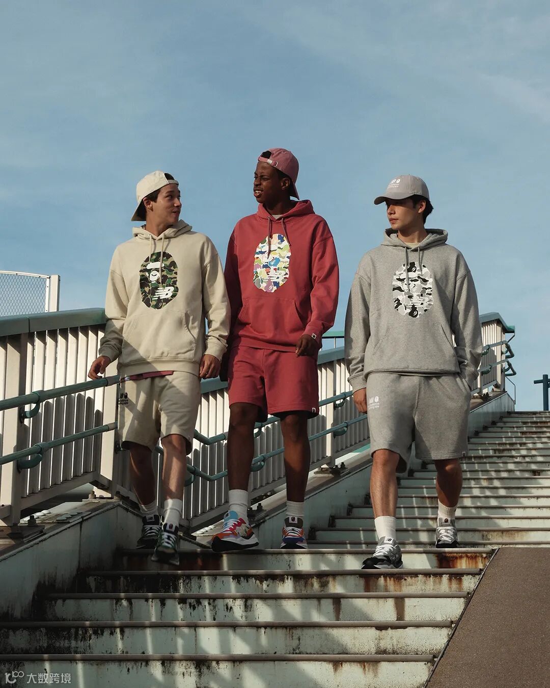 除此之外,与之一同发售的服装产品囊括:连帽卫衣、短袖、短裤。重磅面料应用,Bape® 标志性猿人迷彩图案加持,趣味、街头、时尚度集于一体,绝对是 Bape® 与New Balance 共同爱好者收藏的福音。