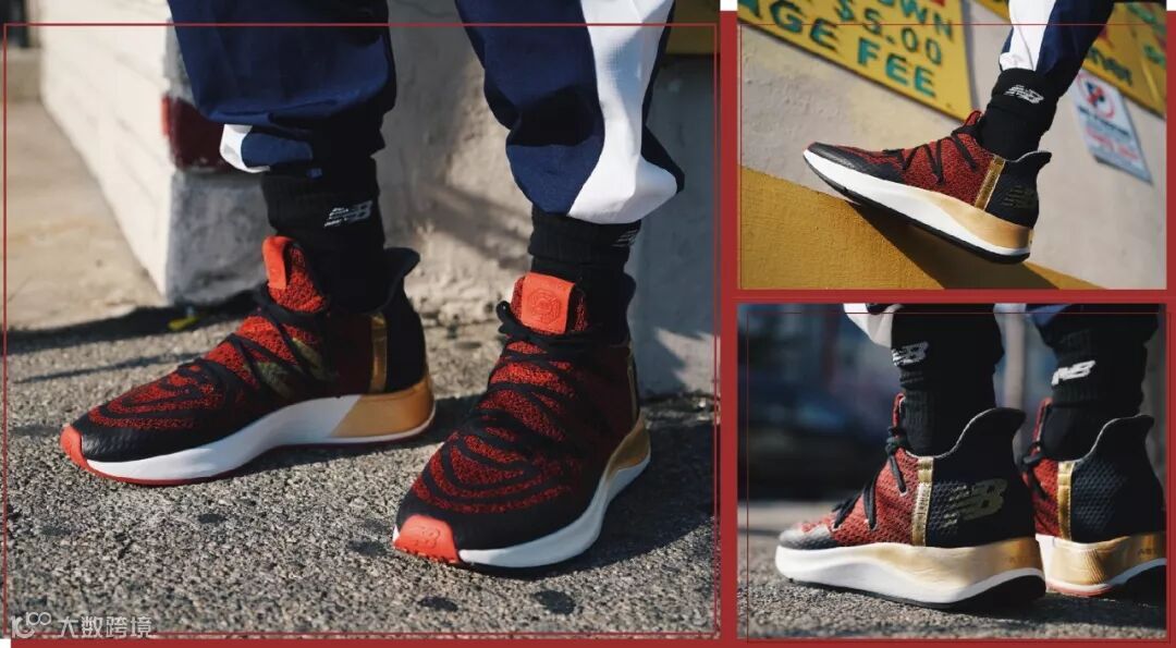 鞋带处有金色NB窗花装饰,年味十足