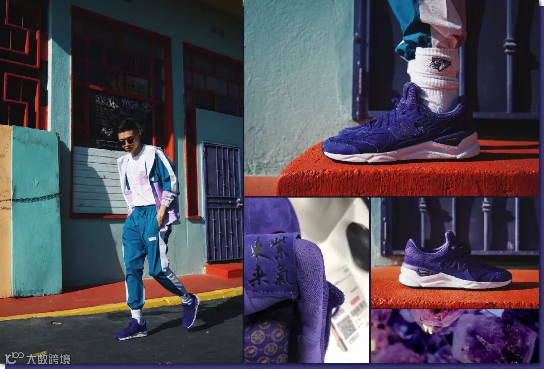 鞋舌内侧有“紫气东来”字样, 象征好运的到来