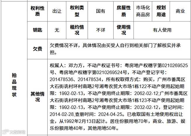 广州市天河区人民法院将于2025年08月25日上午10时至2025年08日26日上午10时(延时除外)在广州市天河区人民法院淘宝网司法拍卖网络平台上进行公开拍卖活动(网址:网址:http://sf.taobao.com/020/04?,户名:广州市天河区人民法院),详情如下: